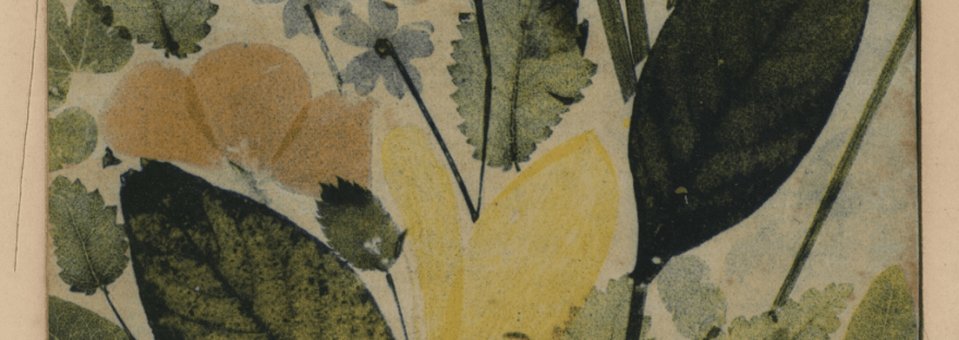 [Image : Ducos du Hauron, Louis, Reproduction collographique de feuilles et de pétales de fleurs d’après un trio de négatifs dont le tirage en gélatine fut produit sous forme de diaphanie dans une séance de la Société Française de Photographie, février 1870., 1870, musée Nicéphore Niepce, Ville de Chalon-sur-Saône ]
