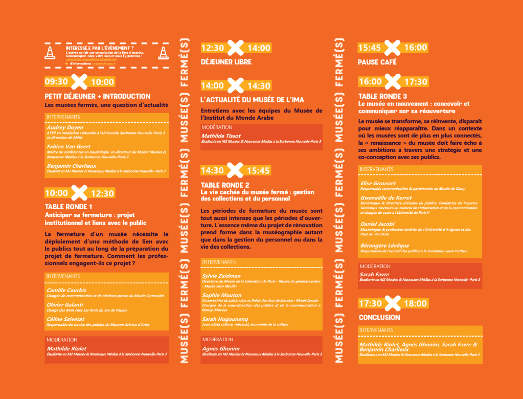 17:30 Clôture de la journée et conclusion par les étudiants du M2 Muséologie et Nouveaux médias