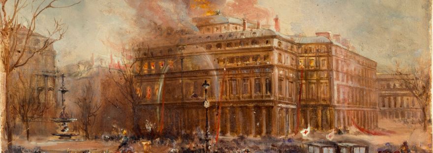 [Image : Allouard, Edmond. L’incendie de la Comédie française, le 8 mars 1900. Vers 1900. Musée Carnavalet. Collections en ligne Paris Musées]