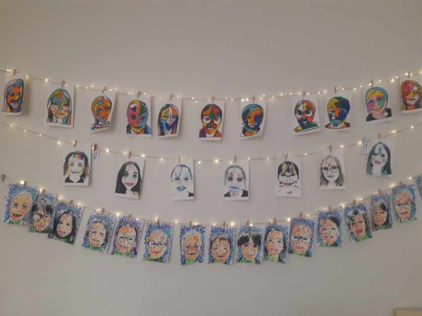 Située dans une petite salle de la Maison de Val, l’exposition optimise un maximum son espace. Et une partie pour les enfants a également été pensée. En effet, un projet artistique mené par l’association Couleurs et toiles avec la participation des enfants du village est exposé. Ce dernier consiste en la réalisation de portraits des enfants du village. Une table et des chaises sont à leur disposition pour que les jeunes visiteurs puissent créer et s’approprier la notion de portrait, notion centrale/au cœur de l’exposition.