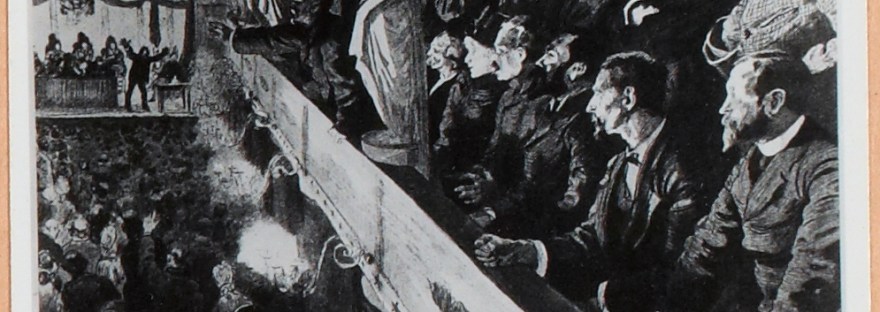 [Illustration : Anonyme, Une réunion publique en 1885, vers 1975, Musée Carnavalet, Histoire de Paris, Collection en ligne, Paris Musées ]