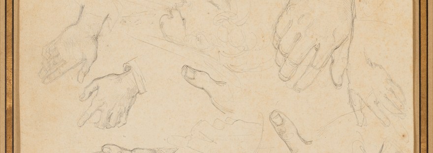 [Illustration : Théodore Géricault, Etudes de main et visage, 1818 – 1819, Petit Palais, Musée des Beaux-Arts de la ville de Paris, Collection en ligne, Paris Musées]