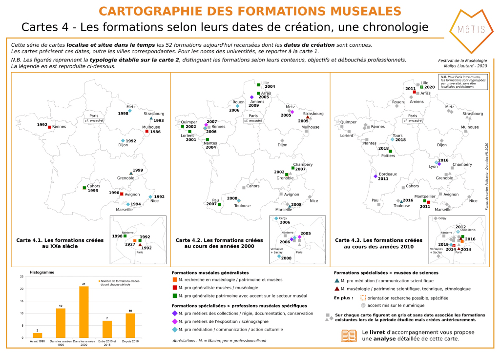 À travers une approche géographique et statistique problématisée, les cartes présentées permettent non seulement de visualiser la répartition territoriale de ces formations, mais également d’en identifier les différents types, d’en observer l’émergence historique, tout en soulevant la question complexe de leur ancrage disciplinaire – et au-delà celle de la « discipline » muséologique : le musée est-il un objet, un sujet, un terrain, une discipline à proprement parler ?