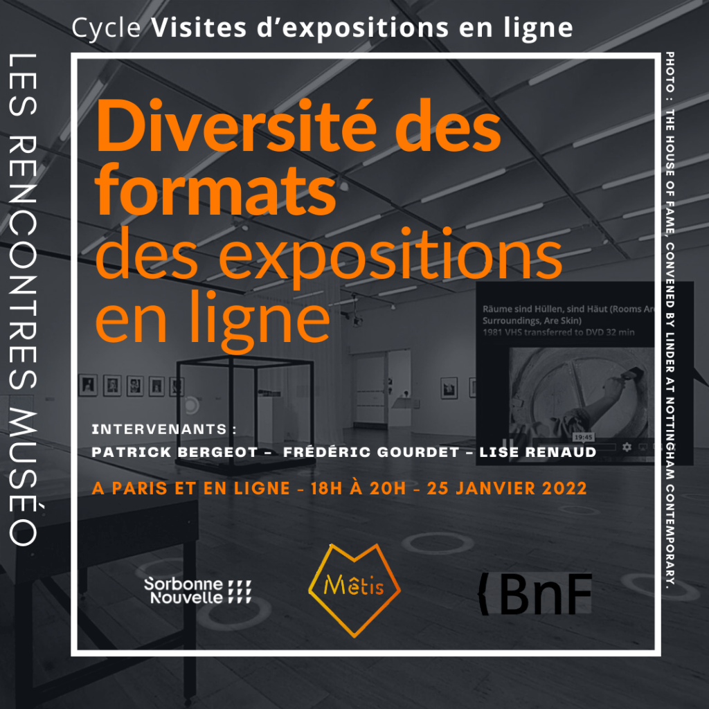 Le cycle de rencontres « Visites d’expositions en ligne » vise à mieux comprendre les formes et les formats des visites d’exposition et musée en ligne, à partir d’un triple point de vue : définition et terminologie ; conception ; réception. Si le format en ligne des expositions a été fortement mobilisé depuis la crise sanitaire et les confinements successifs, son usage par les institutions patrimoniales n’est pourtant pas nouveau : les différentes séances de ce cycle mêleront points de vue de chercheurs et de professionnels afin de mettre en débat les stratégies institutionnelles autour de ces expositions. Leurs pratiques et registres de réception des contenus ainsi diffusés interrogent l’impact de la (re)médiation numérique sur l’expérience de visite, les sens et valeurs attachés aux œuvres et aux institutions culturelles.