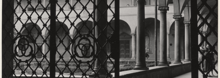 [ Illustration : Maurice Durville, Cloître vu à travers un portail ouvragé, tirage sur papier au gélatino-bromure d’argent, Chalon-sur-Saone, Musée Nicéphore Niepce ]