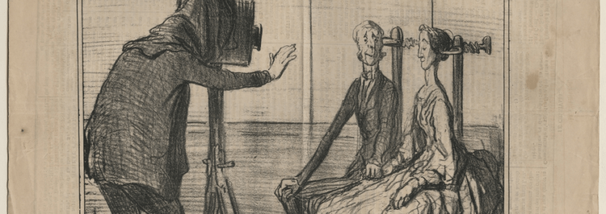 [Illustration : Honoré Daumier et Destouches, PHOTOGRAPHIE / Nouveau procédé employé pour obtenir des poses gracieuses., 5 juin 1856, Chalon-sur-Saône, Musée Nicéphore Niepce, Collection en ligne ]