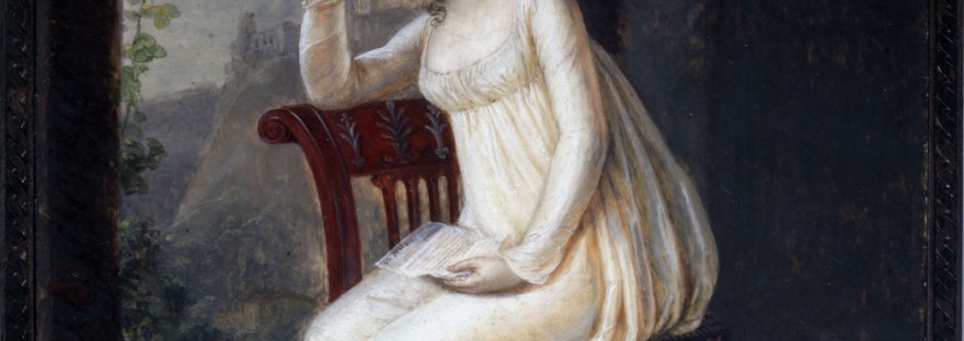 [ Illustration : Attribué à Berjon Antoine, Portrait en pied d’une femme tenant une lettre, vers1800, Paris, Musée Cognacq-Jay, le goût du XVIIIe, Collection en ligne, Paris Musées ]