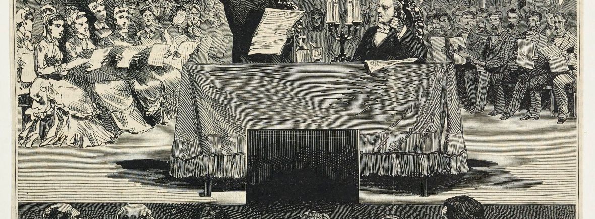 [Illustration : Inconnu, « Conférence sur l’exposition de Philadelphie faite par Victor Hugo et Louis Blanc » , 1876. Paris Musées – Maisons de Victor Hugo Paris-Guernesey. ]
